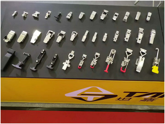 除了磁力夾具外,我們還展出了具有實用性和設(shè)計感并存的工業(yè)五金系列產(chǎn)品:搭扣、鉸鏈(合頁)、門配和不銹鋼星形旋鈕等。