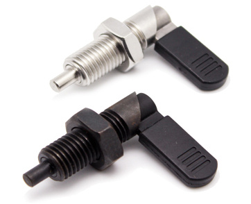 帶定止位的把手式分度銷,適用于要求鎖定銷頭在任何時(shí)候均不得突出的場(chǎng)合。將鎖頭旋轉(zhuǎn)180°,鎖定銷頭自行縮回。槽口提供銷頭定位及防旋轉(zhuǎn)功能。
