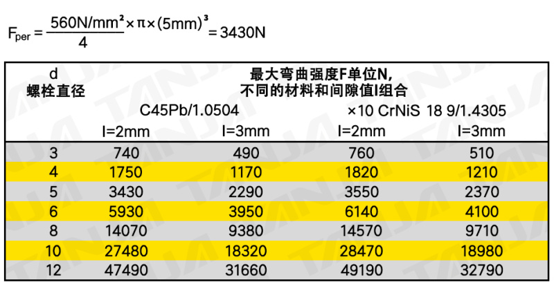 不銹鋼制,螺栓直徑為6mm的分度銷,屈服極限Re = 580 N/mm2,為防永久形變,計(jì)算所允許的最大剪切應(yīng)力。