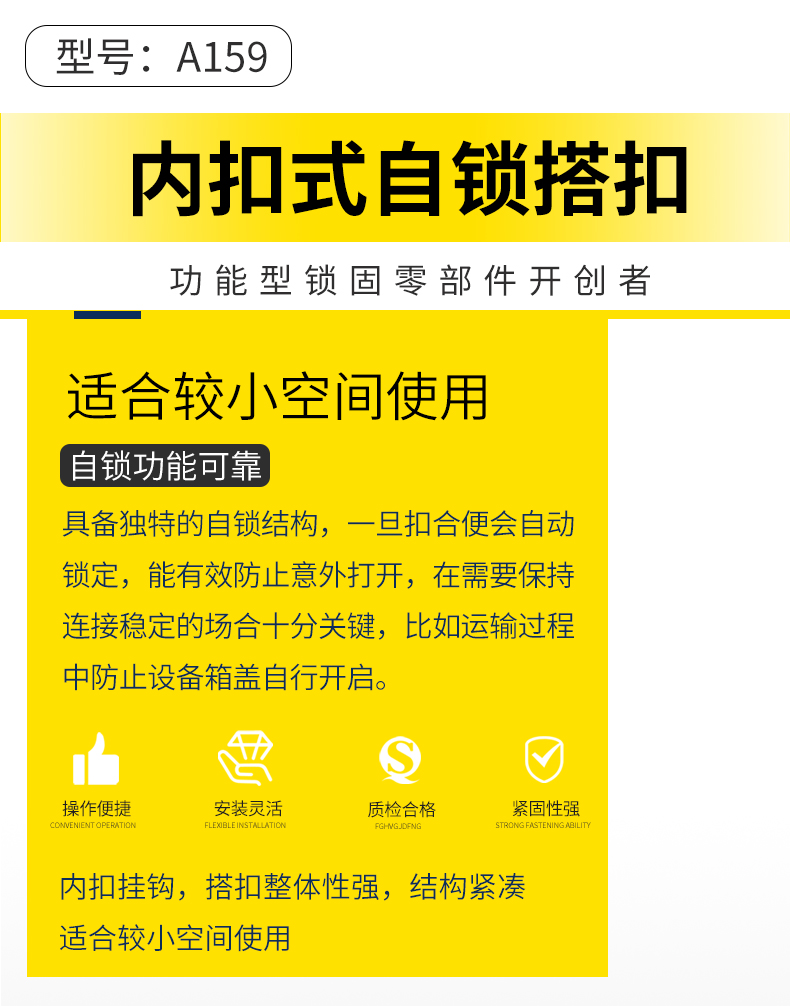 內扣式自鎖搭扣是一種常見的連接緊固部件,以下是它的優(yōu)點和使用場景介紹:
