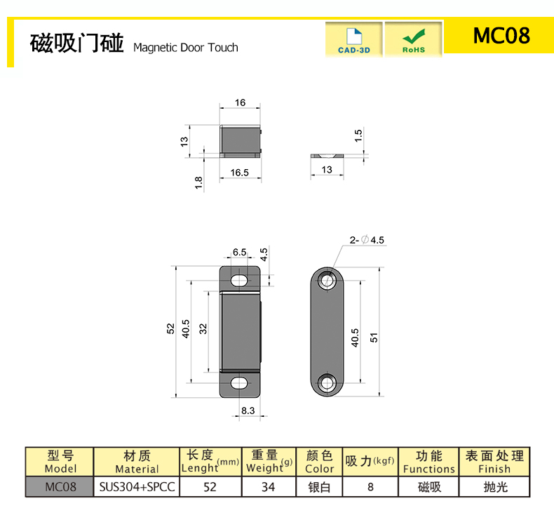 SUS304+SPCC 34.01 52 銀白 磁吸