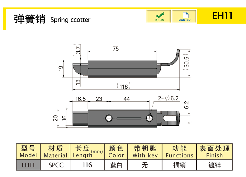 SPCC 148.01 116 藍白 鍍鋅 插銷