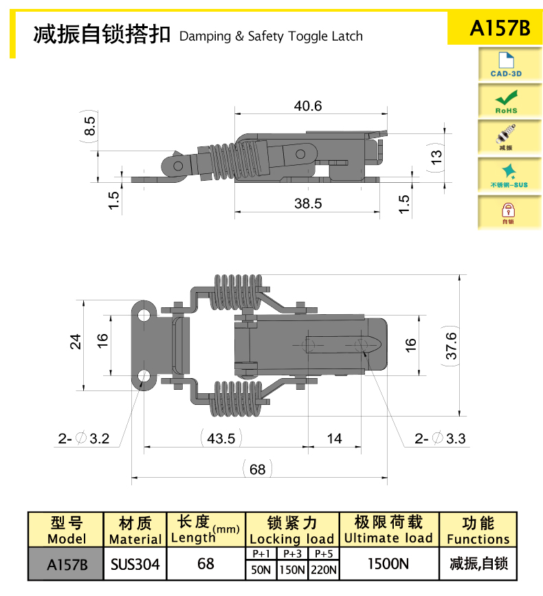 自鎖裝置可實現(xiàn)自鎖功能,具有可靠的安全性,搭扣不會因振動松脫