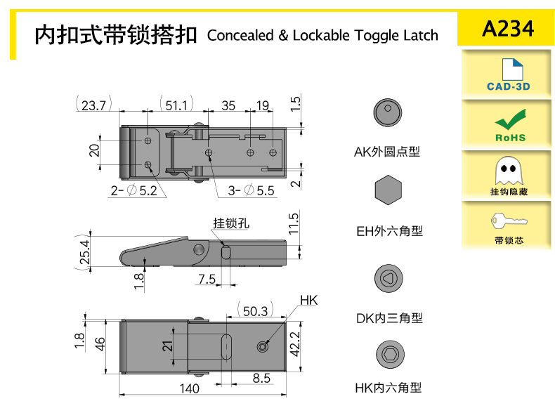 140 SPCC 1 內(nèi)扣式,帶鎖
