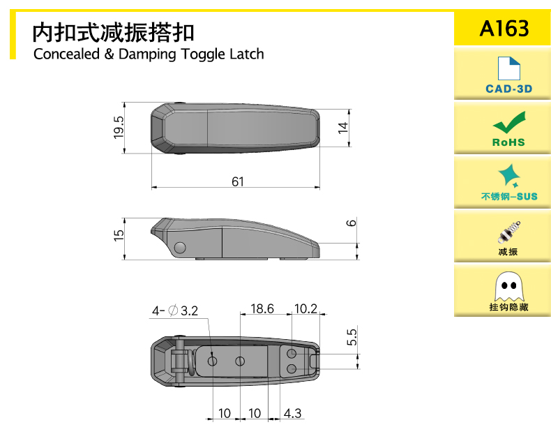 內(nèi)扣掛鉤,搭扣整體性強(qiáng),結(jié)構(gòu)緊湊