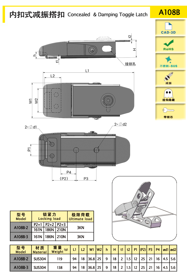 內(nèi)扣掛鉤,搭扣整體性強,結(jié)構(gòu)緊湊