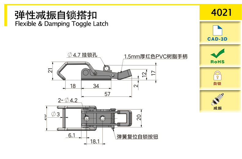 弧形彈簧鋼線使搭扣具有彈性預壓力,并具有減振功能