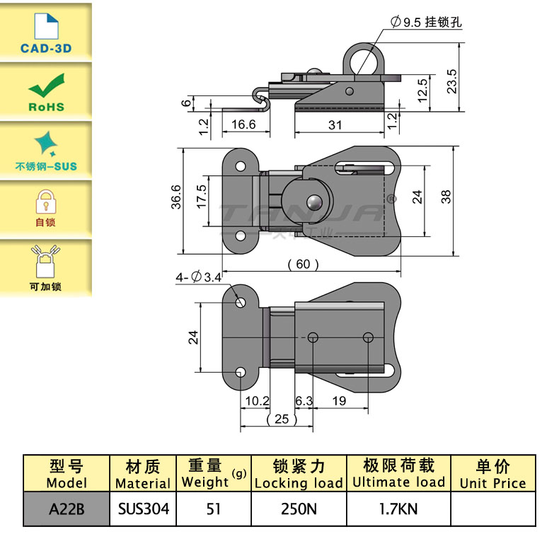 可掛鎖,增加安全性