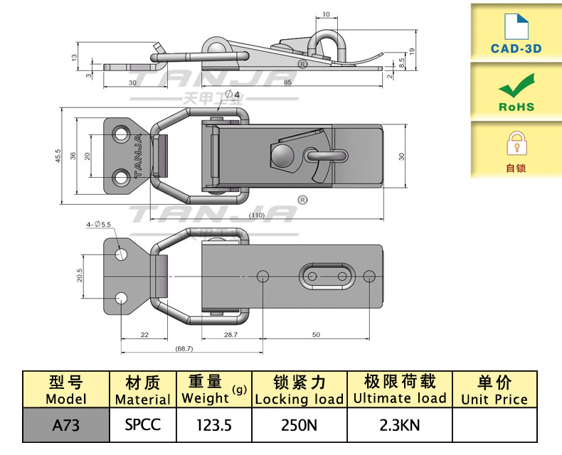 帶安全閂可防止搭扣因震動(dòng)彈開