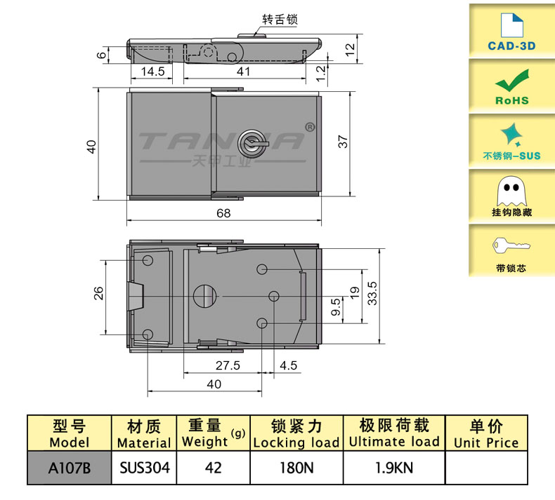 67.9 SUS304 42.01 180 1900 內(nèi)扣式,帶鎖