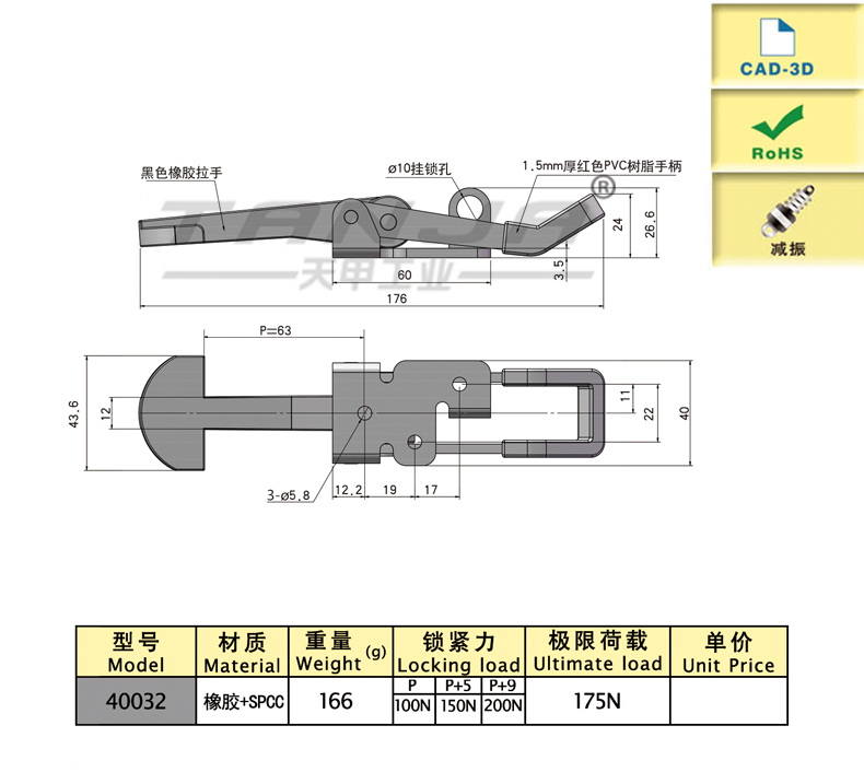 質(zhì)優(yōu)橡膠體扣身具有減振功能,可保持對連接體的彈性預(yù)壓