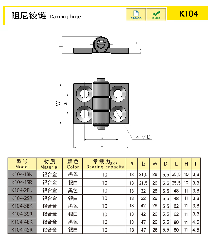 | K104-4SR | 鋁合金 | 80 | 銀白 | 36.02 | 輕阻尼 | 下載 |