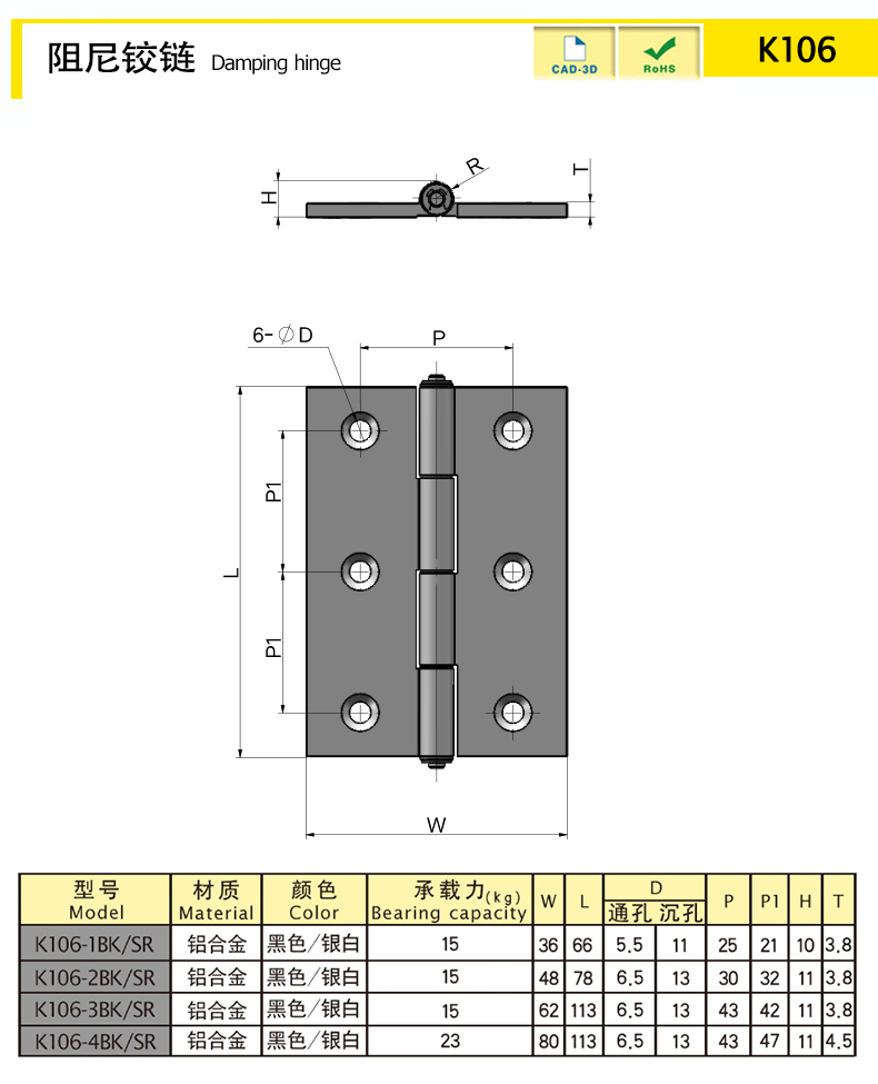 | K106-4SR | 鋁合金 | 113 | 銀白 | 120.01 | 輕阻尼 | 下載 | ||||