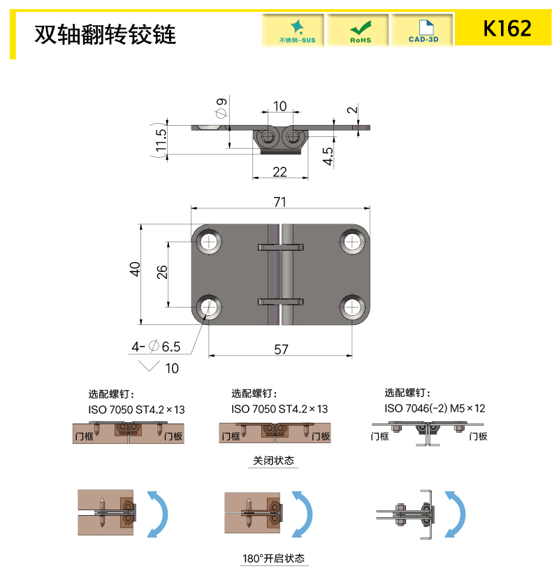 兩邊對(duì)稱,開合角度180°