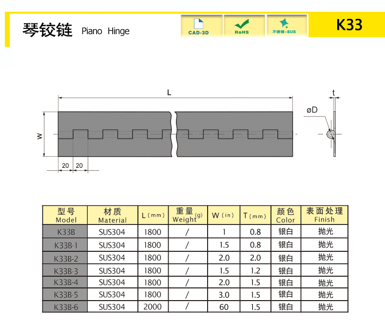 | K33B-6 | SUS304 | 2000 | 銀白 | 1 | 輕載 | 下載 |