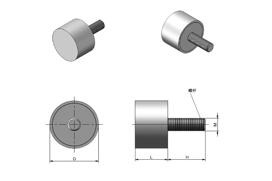 | 型號 | 材質(zhì) ![]() | 重量(g) | 直徑D ![]() | 長度L ![]() | 高度H ![]() | M ![]() | 最佳壓縮量(mm) ![]() |