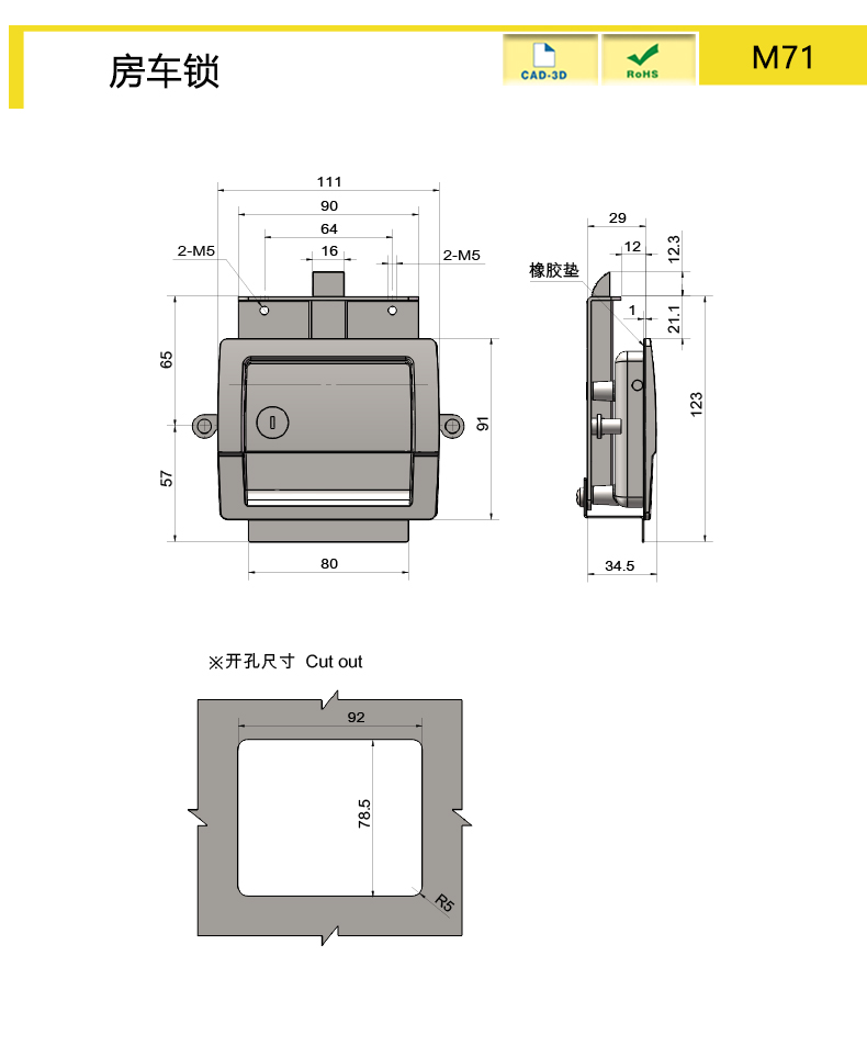 平面盒鎖 鋅合金 111 噴涂 767.46