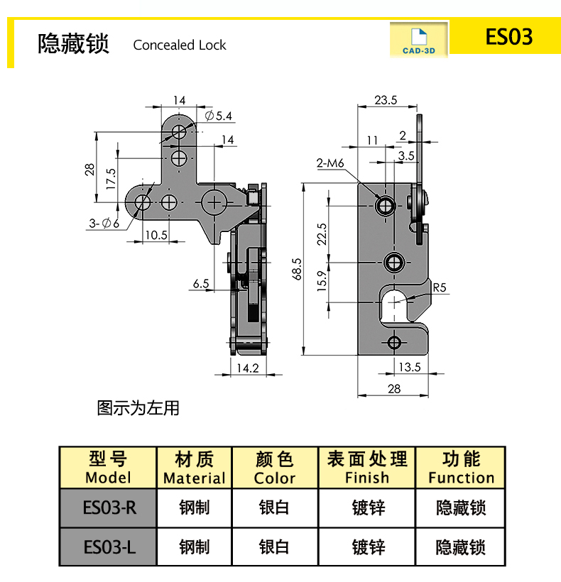 隱藏鎖 鋼制 銀白 鍍鋅 107.51