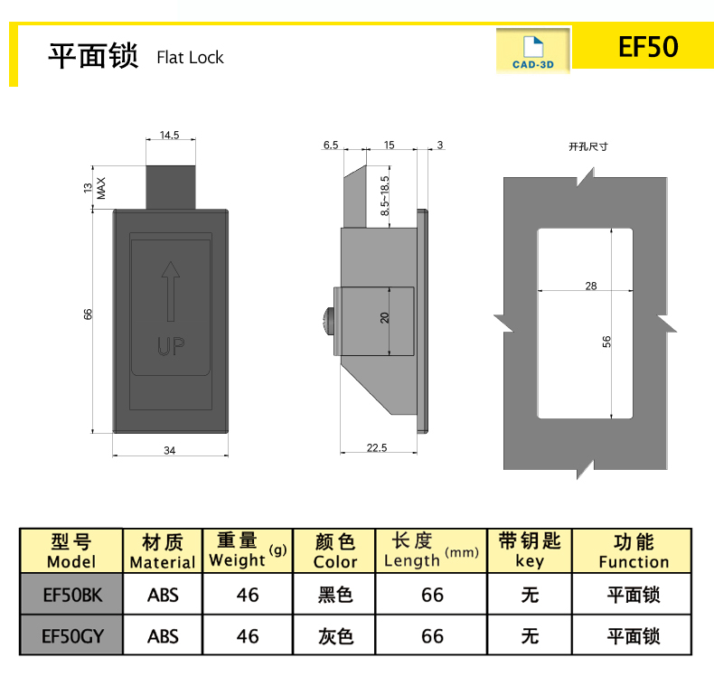 平面鎖 ABS 66 黑色 無(wú) 46.01