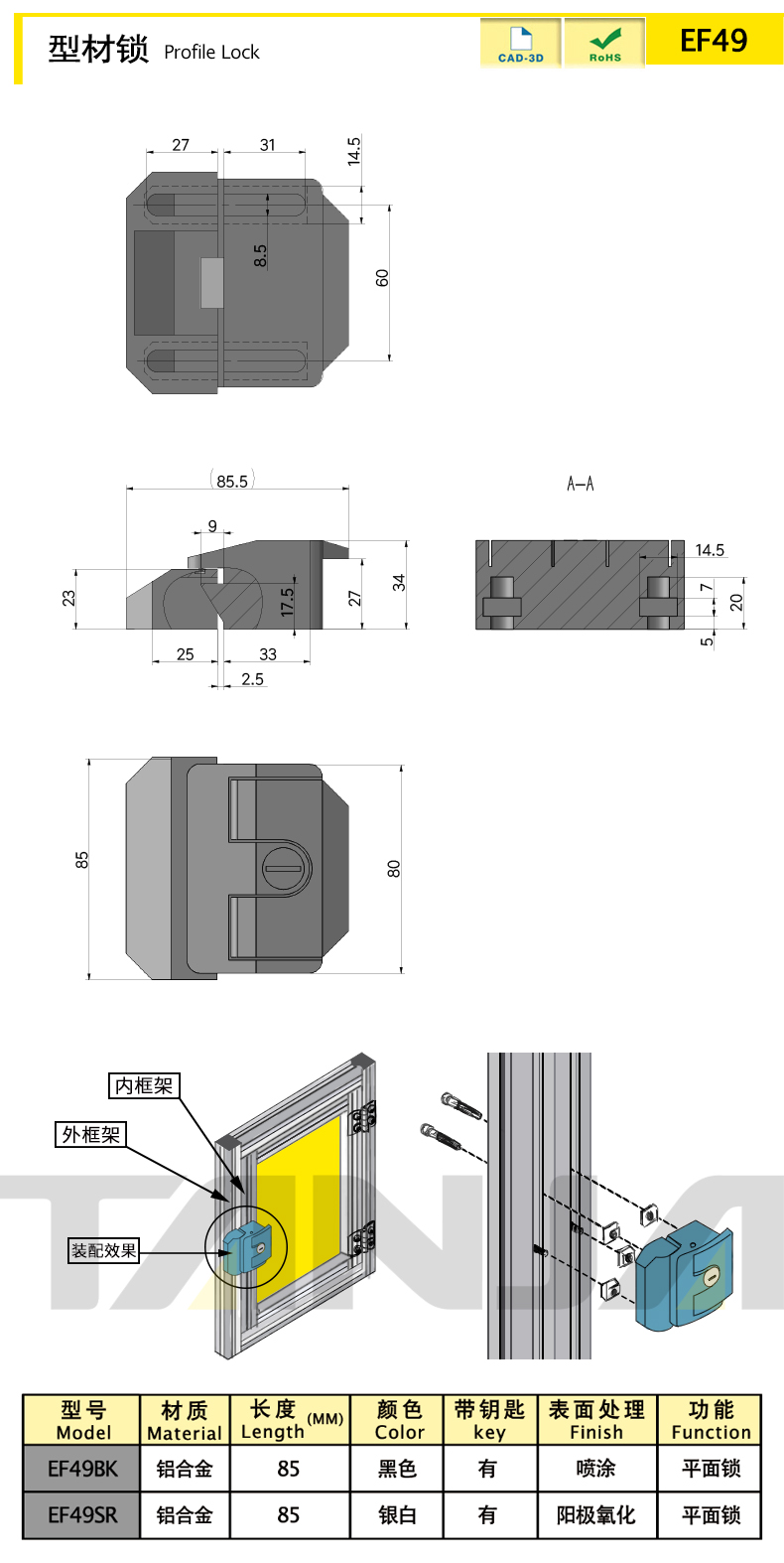 結(jié)構(gòu)功能:把手向上抬起鎖舌收縮開啟,放開把手鎖舌自動(dòng)復(fù)位