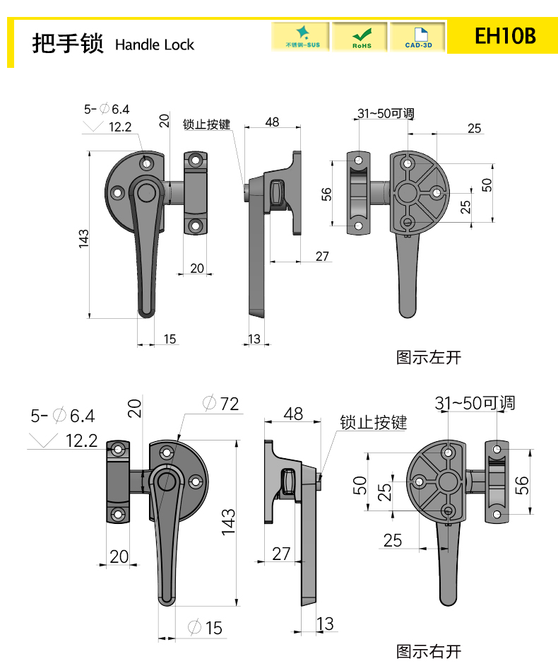 可定位:每90°可定位鎖定,可保持常開或常閉