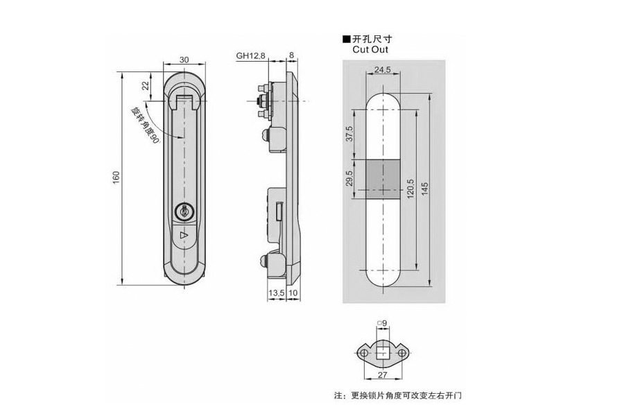 材質(zhì):ABS鎖殼,鋅合金鎖背,A3鎖片,安裝板
